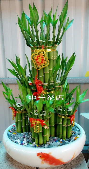 1盆;開運竹+裝飾 備註:1.如遇花材、花器短缺,將以同等質材料替換。 2.訂購前請先參考購物流程,謝謝。